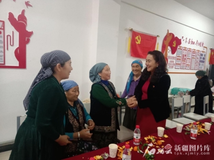 别克扎提(右二)在基层开展家风家教讲座。(资料图)受访者本人供图