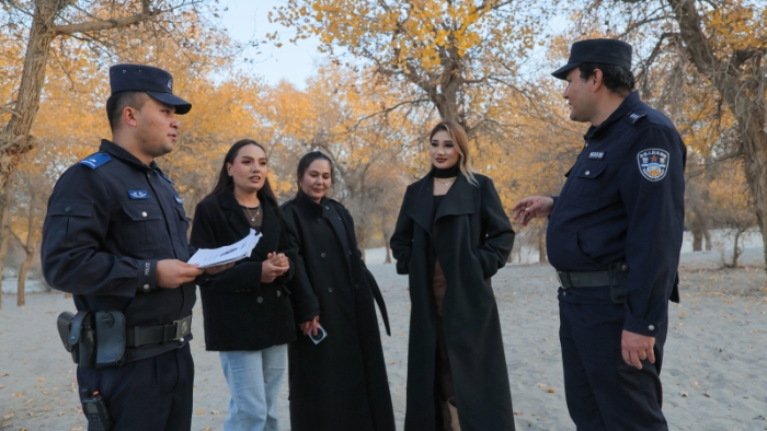 民警辅警在牙甫泉胡杨林普及消防安全知识