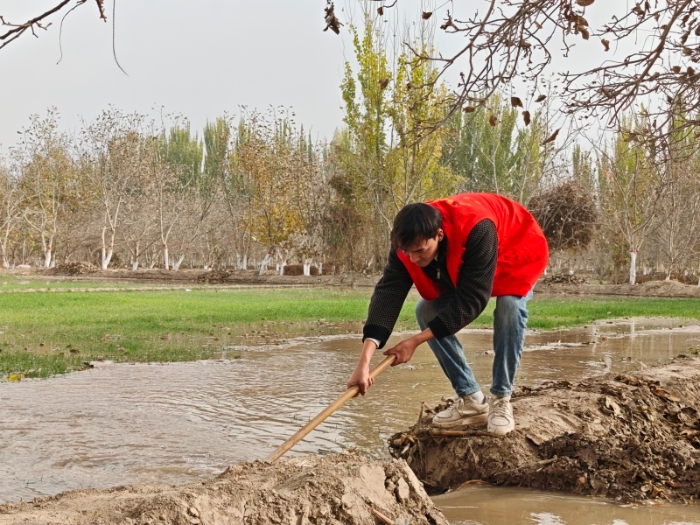 11月5日,记者来到依玛乡色日克乌依村村民阿里木江·阿布来提的冬小麦田,看到他正手持铁锹,反复疏通田间沟渠、平整畦埂。不一会,水流就顺着沟渠缓缓流入了麦田,滋养着越冬的冬小麦根系。