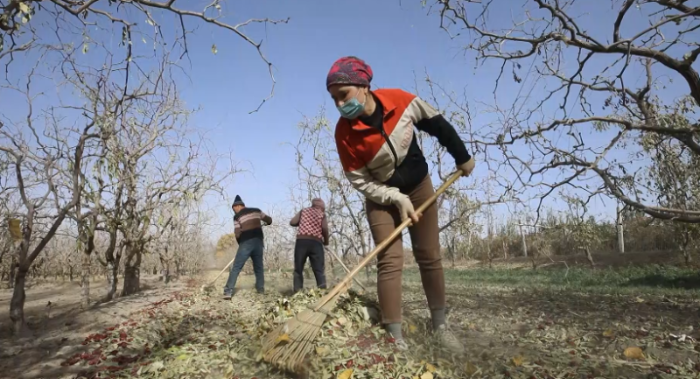 玉山·拜克热说:“今年天气好,管理也得当,红枣的长势比去年还要好,你看这成色,个头均匀,色泽红亮,预计我家的25亩枣园,亩产可以达到650—700公斤,真的又是一个丰收年。”