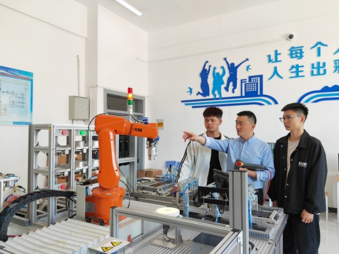 11月22日,博尔塔拉职业技术学院博乐边合区智能制造产业学院的实训车间里,高锦南正手把手指导学生调试设备。他一边操作机器一边强调:“注意程序指令的逻辑顺序,每一步参数的精准度都要掌握好。”