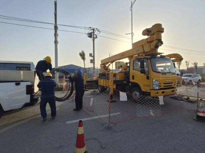 11月23日,喀什市创业三路施工现场一片热火朝天。国网新疆电力有限公司喀什市供电分公司的作业人员分工明确、密切配合,高空作业人员熟练固定断路器设备,地面人员仔细校准杆塔垂直度、排查线路连接隐患,全力推进工程收尾工作,确保项目按时保质完工。