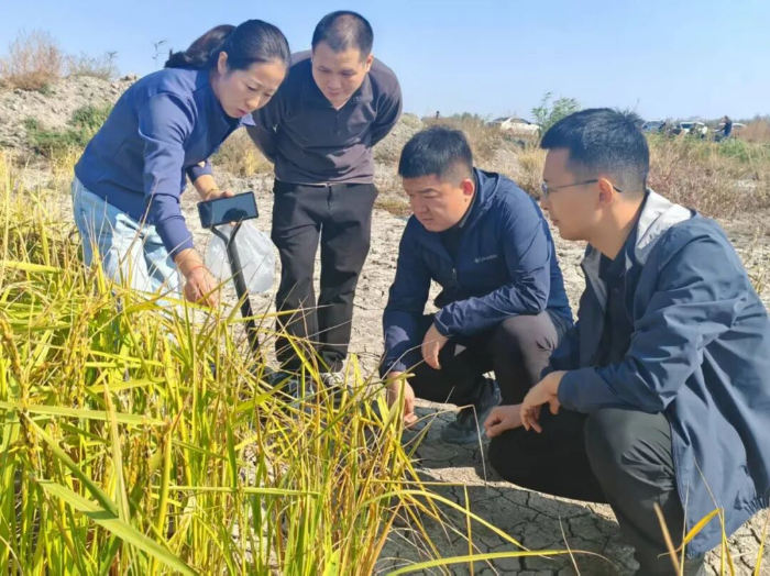 9月16日,福建援疆前方指挥部三明分指挥部干部人才在玛纳斯县广东地乡袁家庄村富硒水稻示范种植基地查看水稻长势。福建援疆前方指挥部三明分指挥部供图