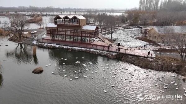 这片湿地是数万只候鸟迁徙途中的“服务区”。“每年迁徙季,会有数万只候鸟在这里路过歇脚,候鸟种类最多时达300余种。”贾漠说,多数候鸟每年在11月下旬陆续南迁,也有相当一部分鸟儿会选择在这里越冬,比如天鹅、绿头鸭,普通鸬鹚等。“为了确保留驻的鸟儿安全越冬,公园通过补水、破冰维持活水区域,并组织地面或无人机巡护,密切监测越冬候鸟的动态。”