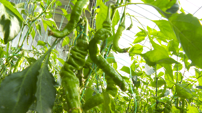 产业园的高标准日光温室内,辣椒长势喜人,绿意盎然,一派丰收在望的喜人景象。